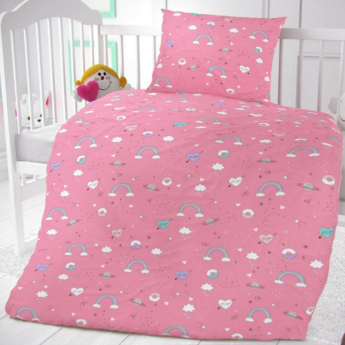 Kvalitex Detské bavlnené obliečky do postieľky Obláčiky ružová, 90 x 135 cm, 45 x 60 cm